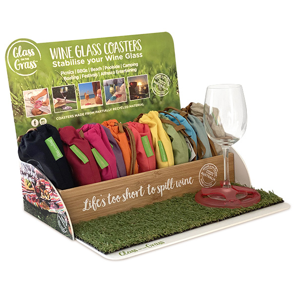 Glass on the Grass Resin Coaster Display unit with 24 packs of coasters (4 coasters in each pack)